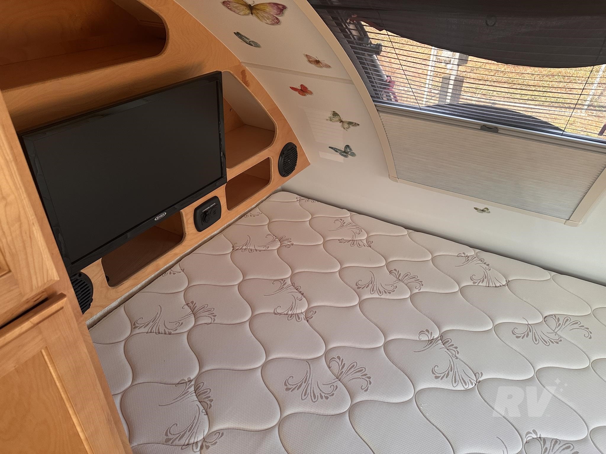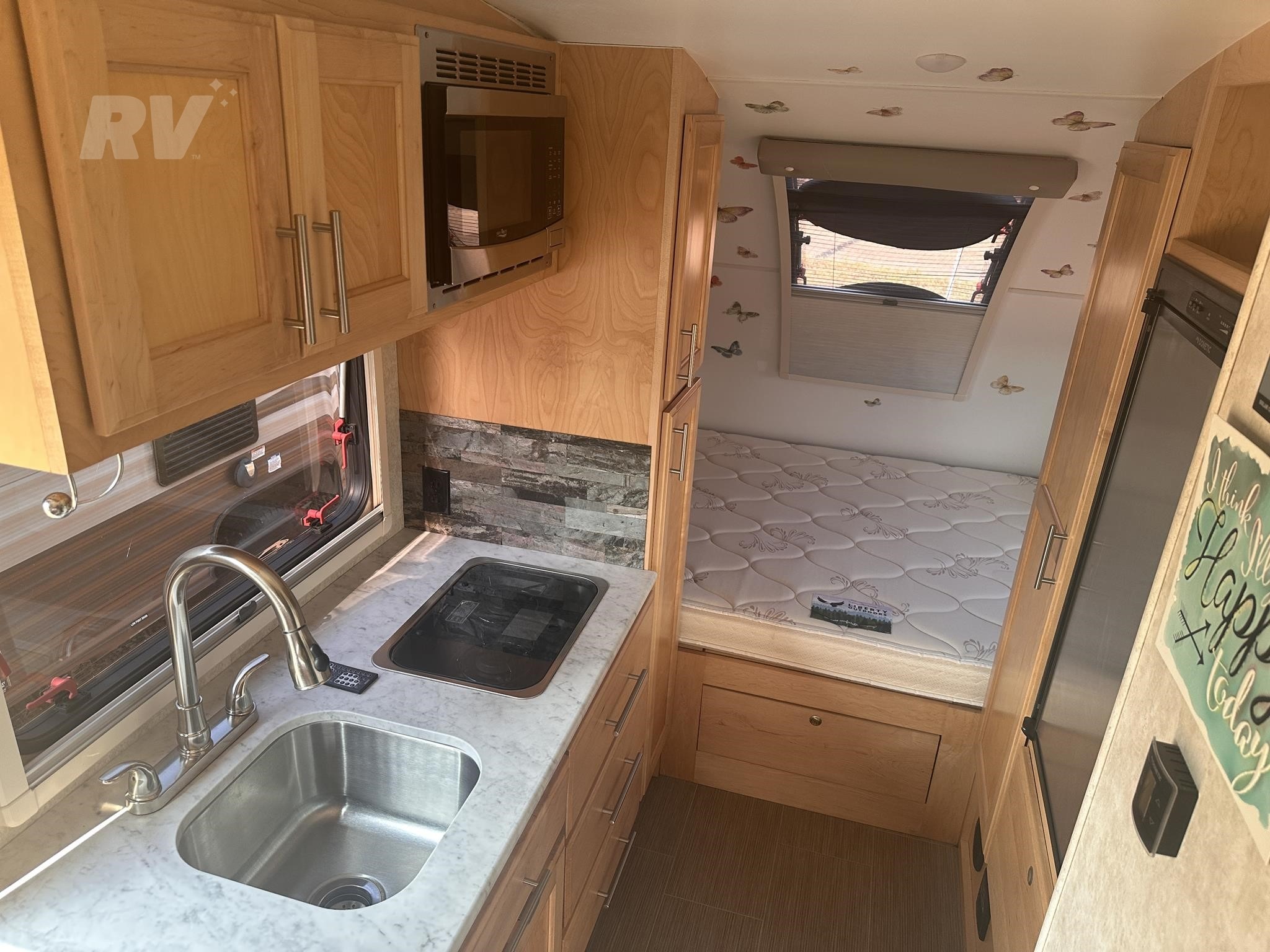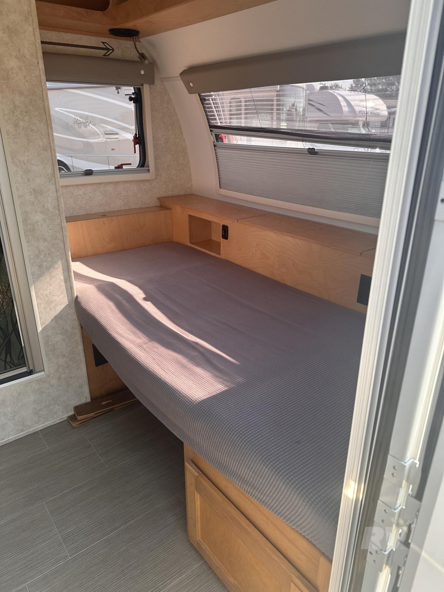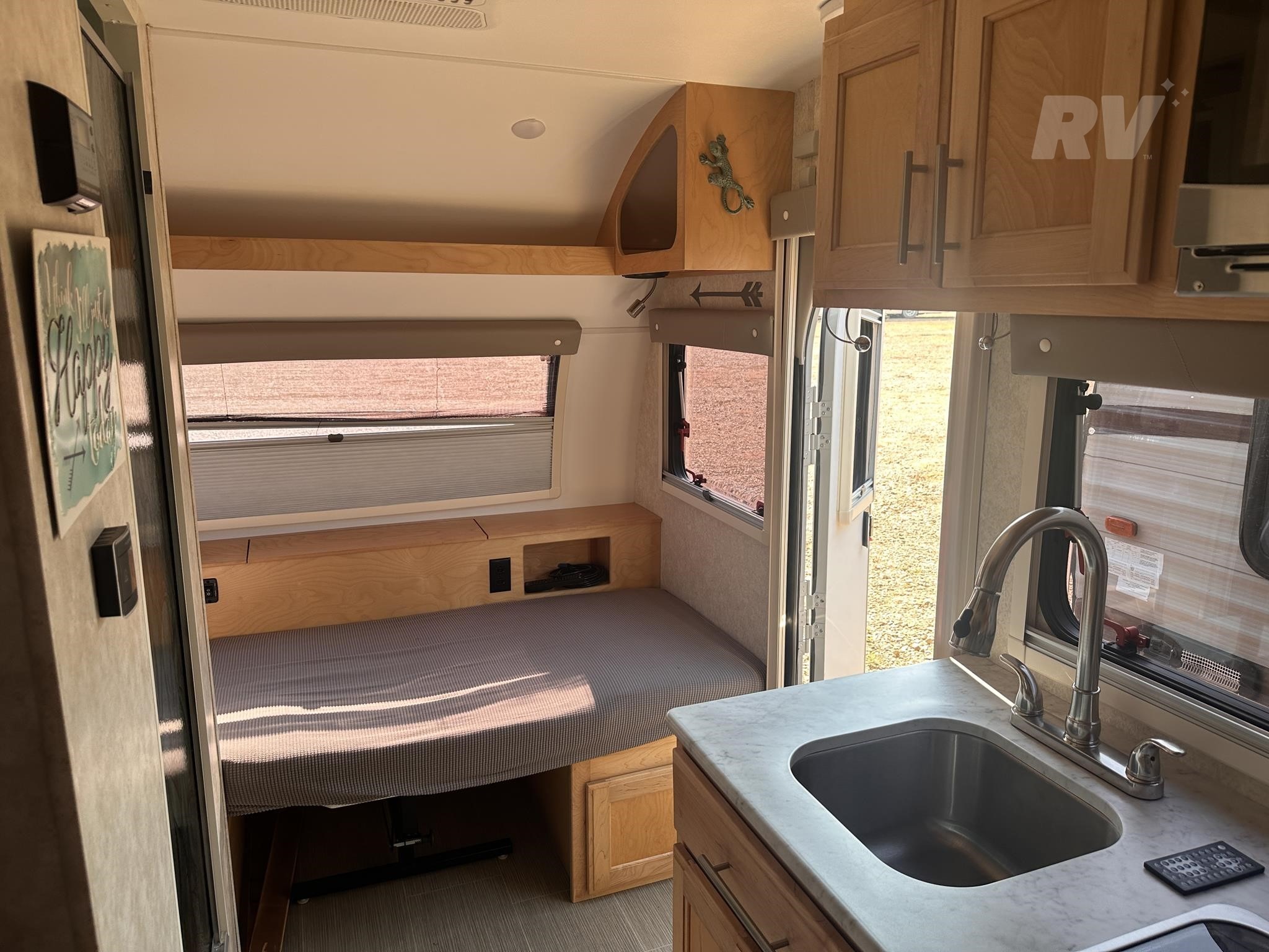 #### Additional Highlights: Azdel composite sidewalls (rot and mold resistant) Dual-pane acrylic windows with shades/screens Fantastic Vent fan Exterior speakers and LED porch lighting Pass-through storage compartment This used travel trailer is the perfect combination of rugged design and refined living—great for camping anywhere from national parks to dispersed wilderness.