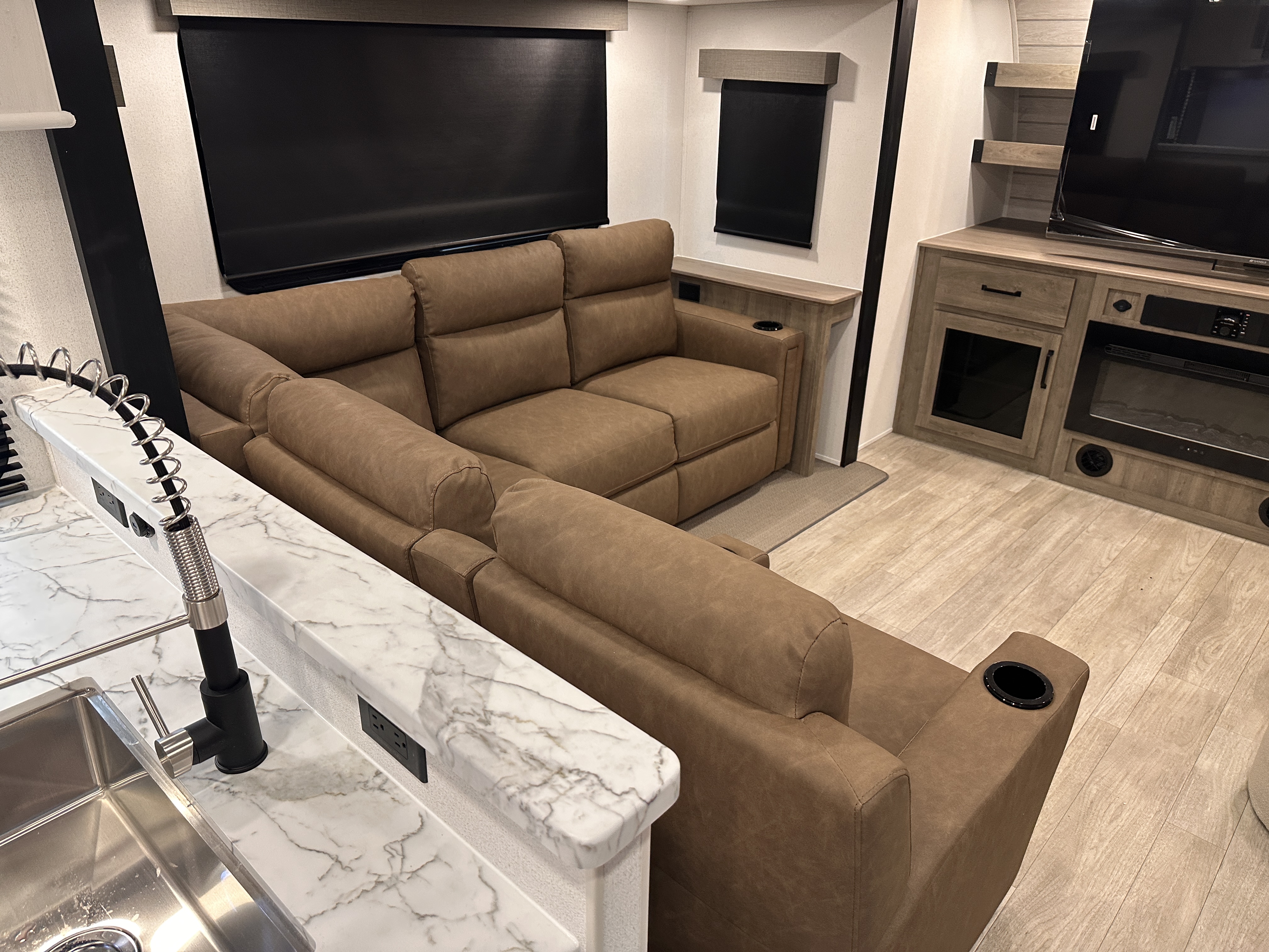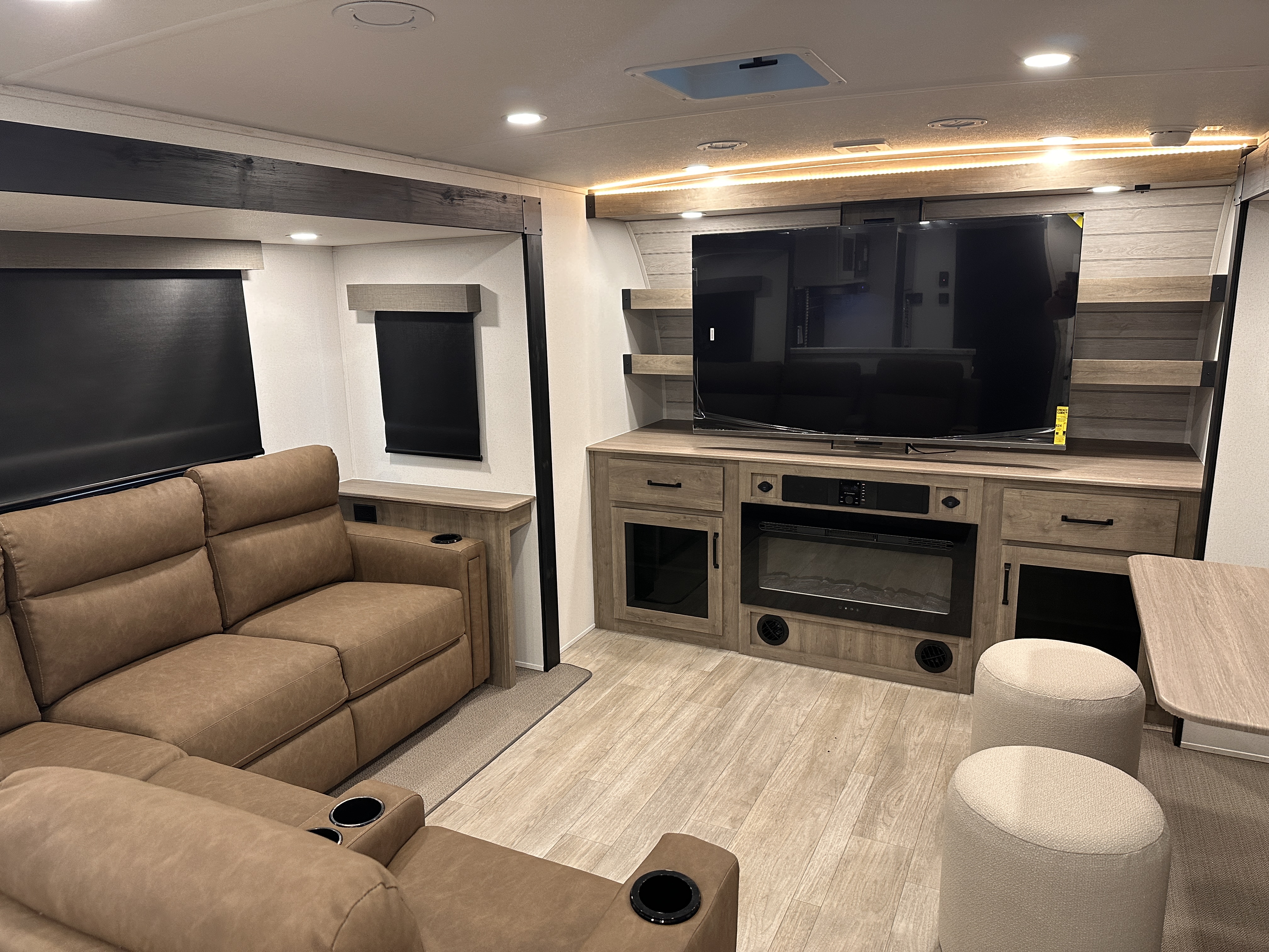 ### Highlighted Features (Features vary by unit—see disclosure below): Spacious front living area with entertainment center King-bed rear suite with private entry to the bathroom Large walk-through bathroom with residential shower Ultralite construction for improved fuel efficiency Power awning , LED lighting, and outdoor speakers Modern kitchen with premium countertops and stainless appliances Climate control upgrades for year-round comfort Solar-ready wiring and available off-grid enhancements Pass-through storage for maximum cargo capacity Premium exterior fiberglass with automotive-style front cap