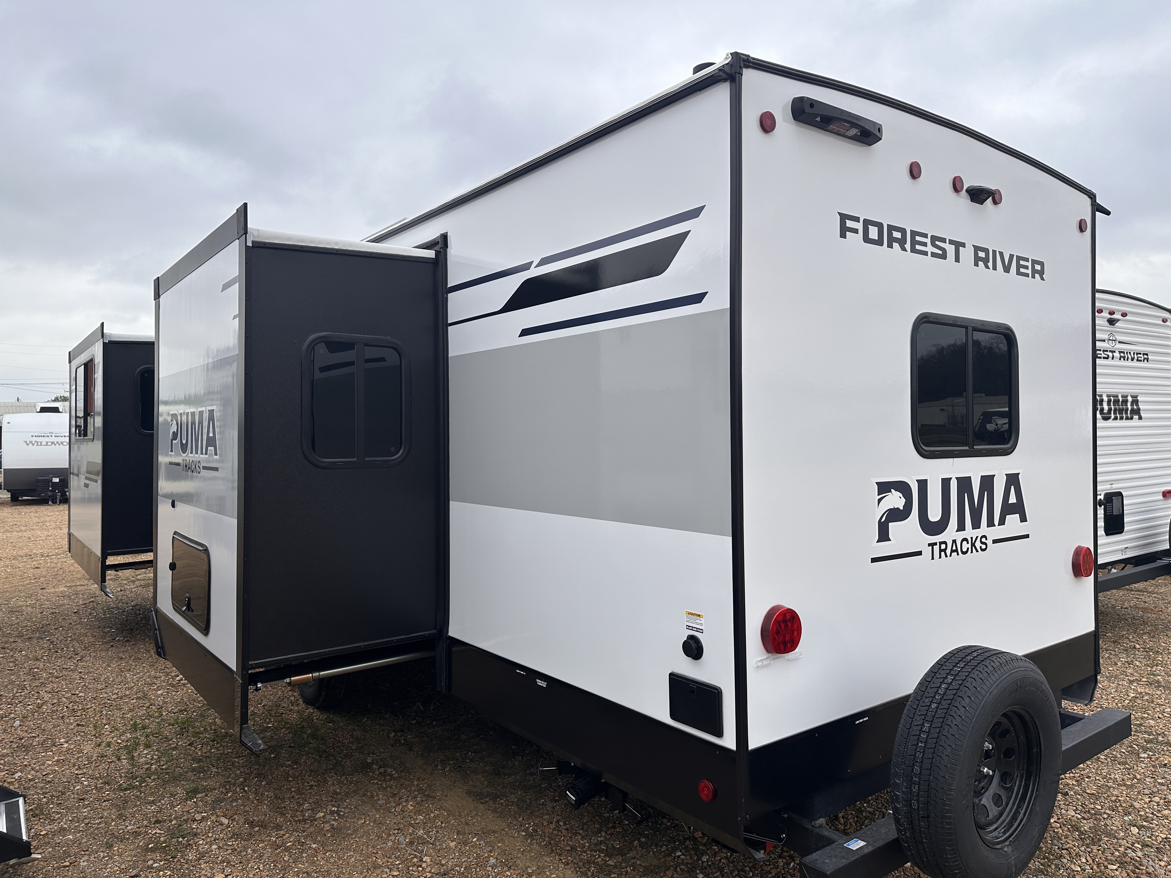Tracks: Introducing the all NEW Puma Tracks. They are the results of superior design and modernization. Striving to meet all the customer’s demand, this trailer provides abundant and unique storage solutions, aluminum superstructure frame for light weight towing and barreled ceilings for a more spacious interior.