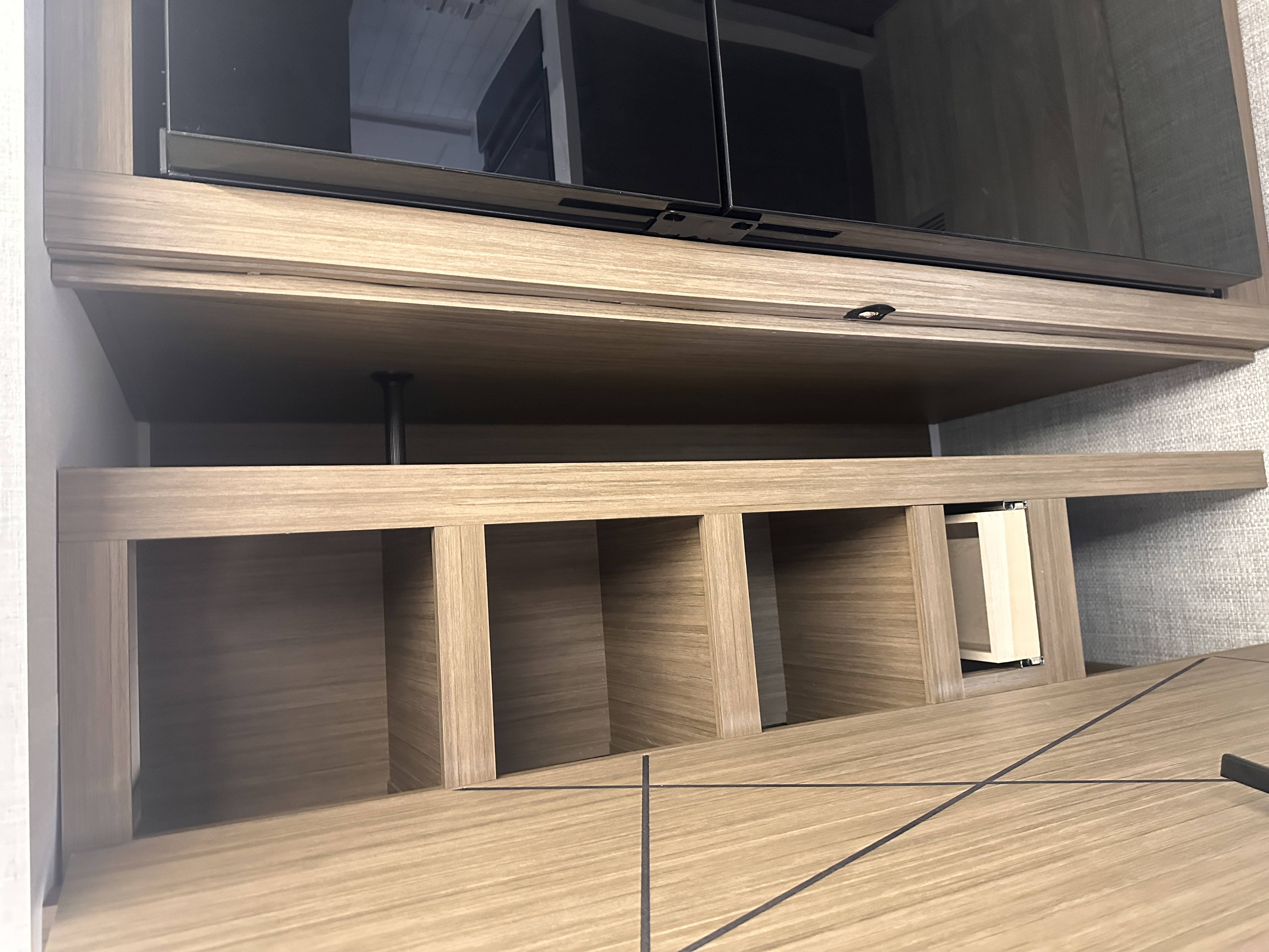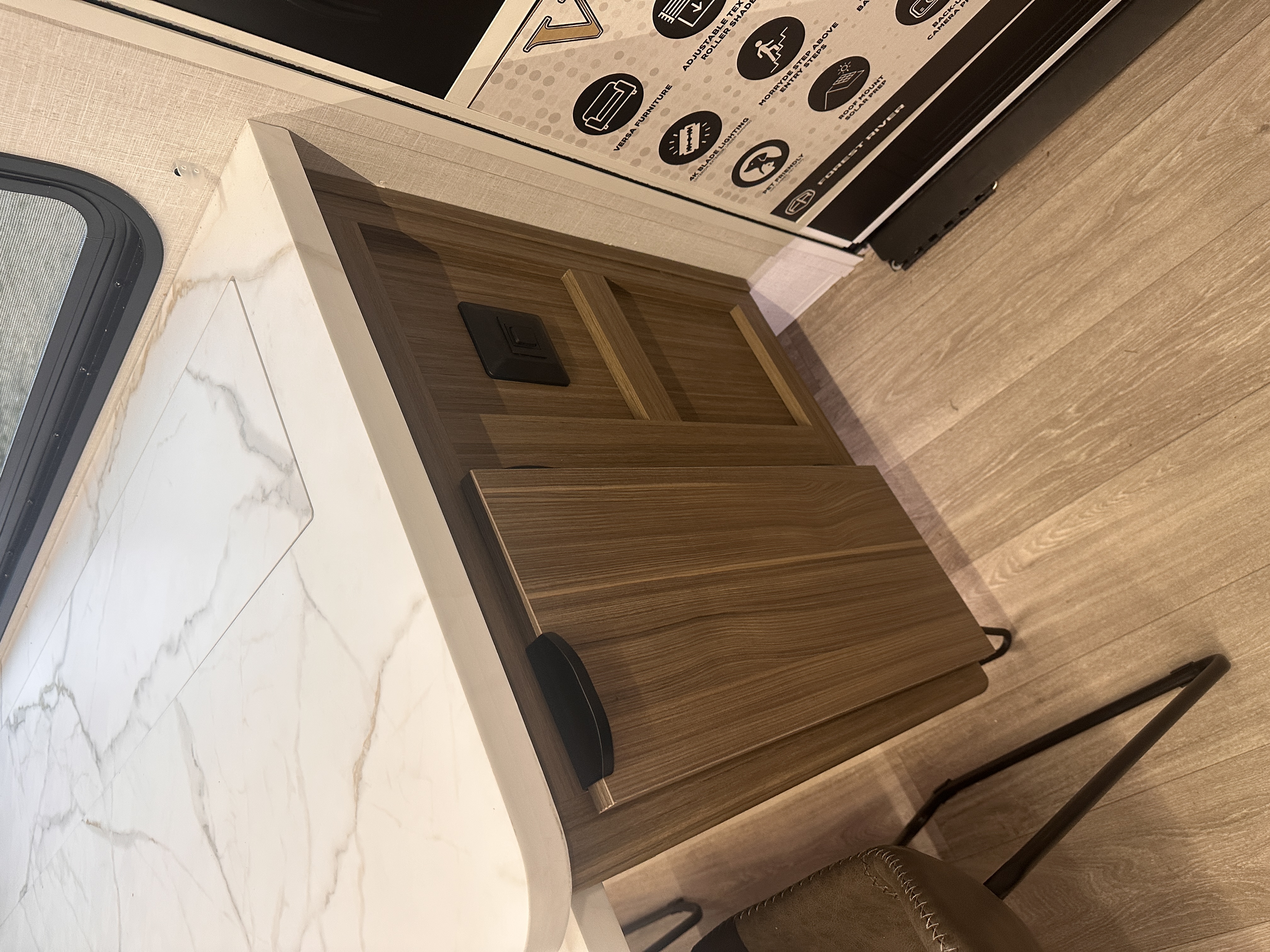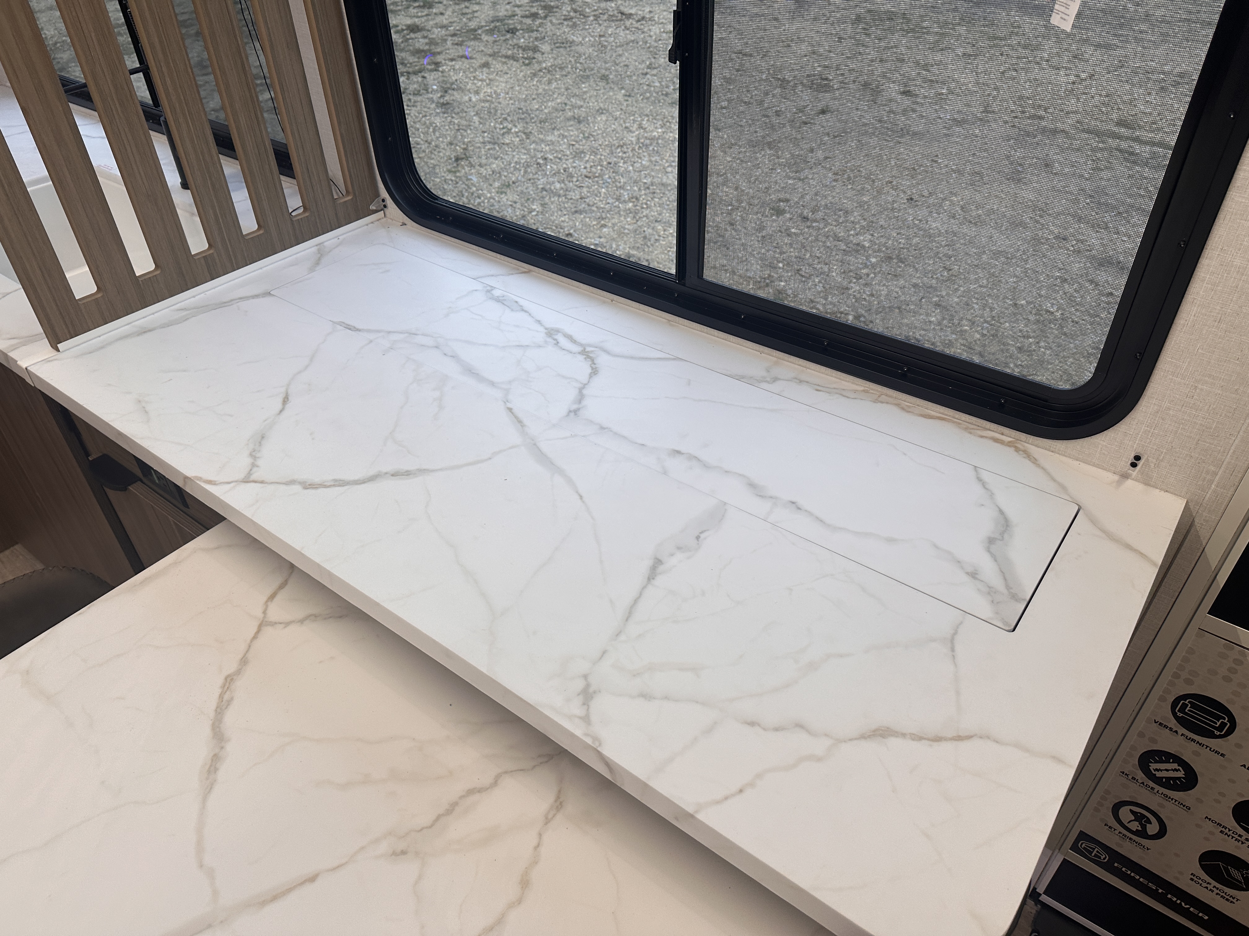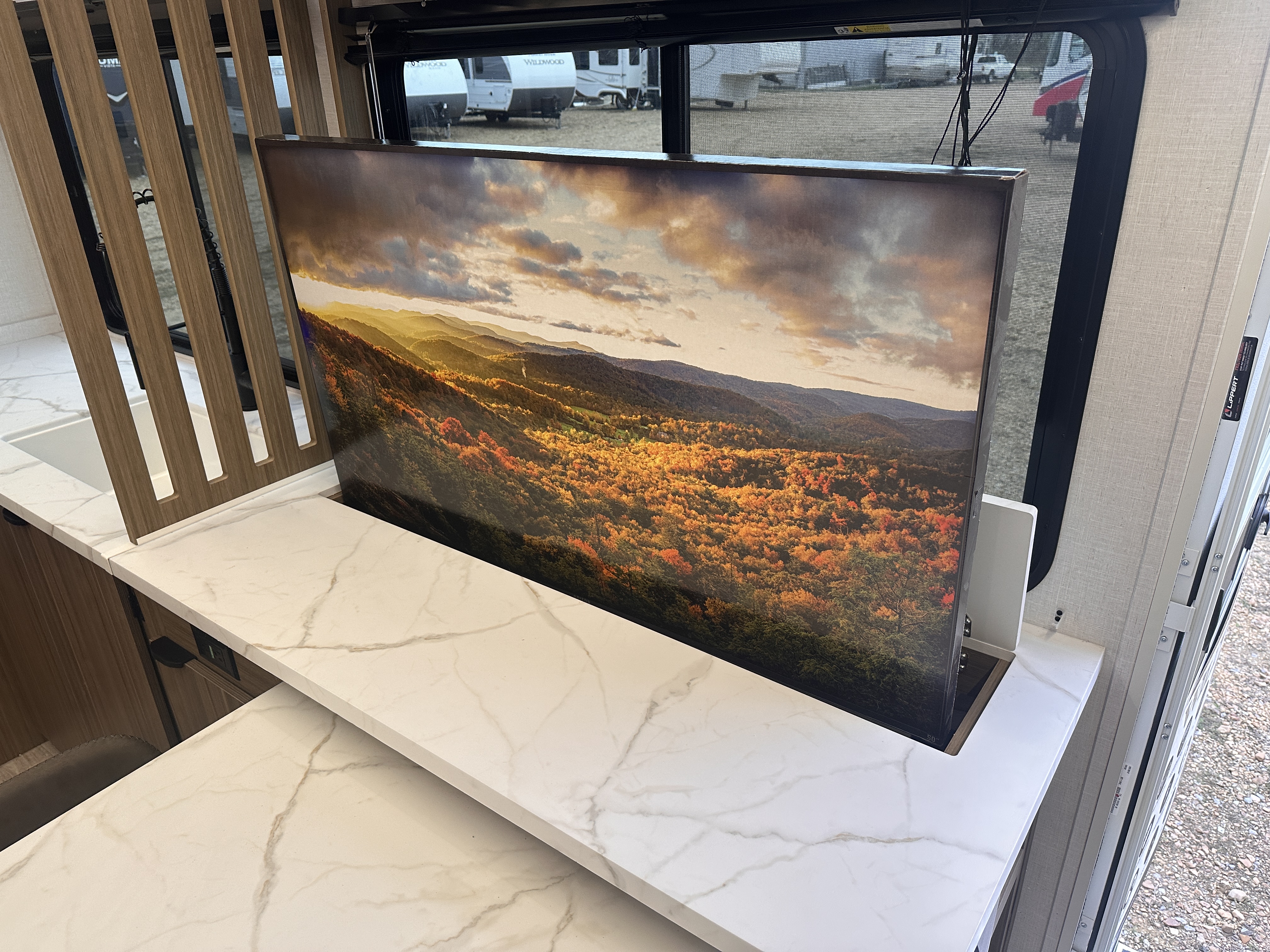 ### Spacious, Family-Ready Interior Step inside and enjoy a thoughtfully designed living space with modern décor, upgraded furnishings, and expansive room to relax. The open floorplan offers: A large slide-out for increased living area Plush seating perfect for movie nights or relaxing after the trail A versatile entertainment center option Plenty of natural light thanks to oversize panoramic windows