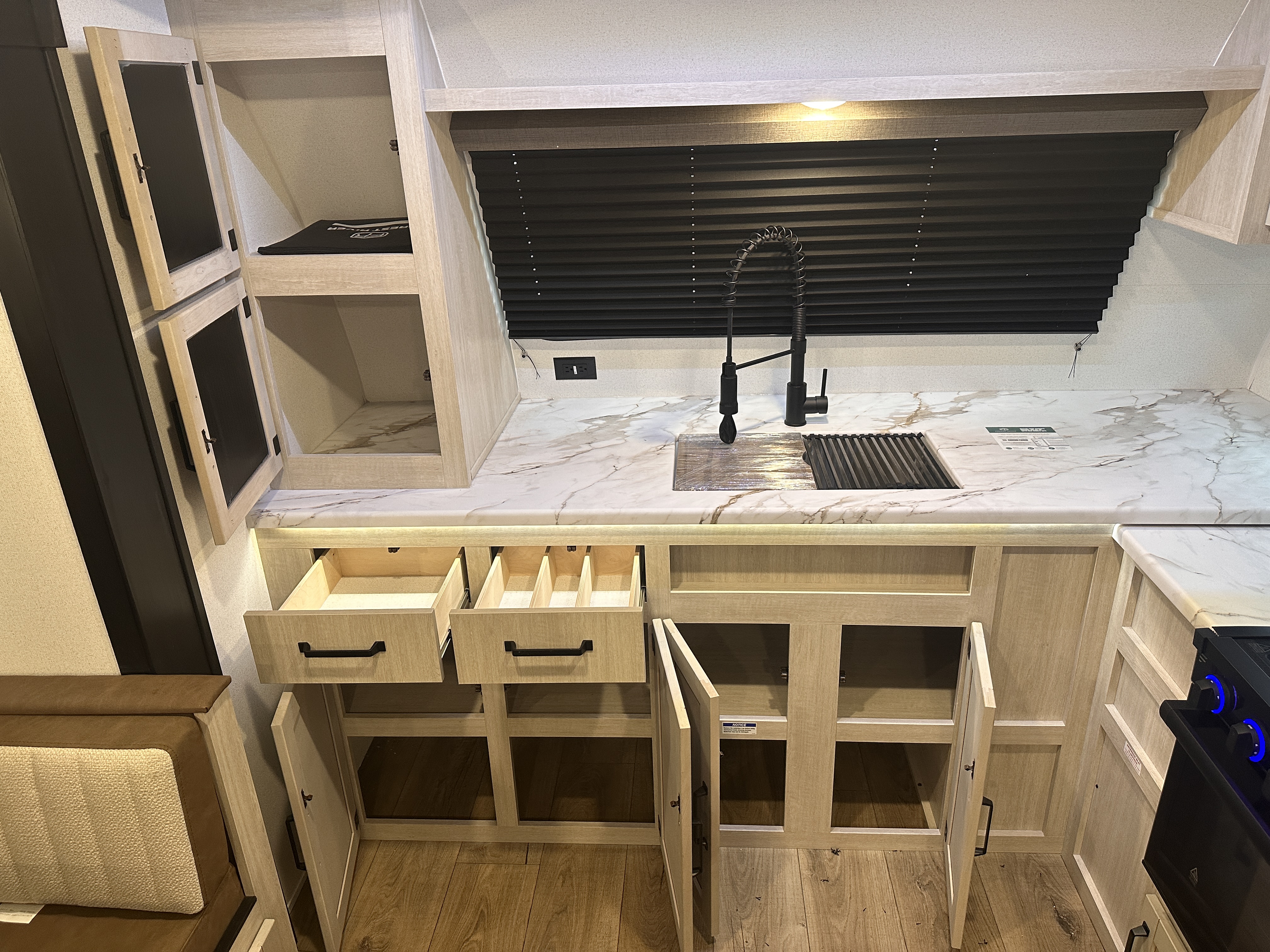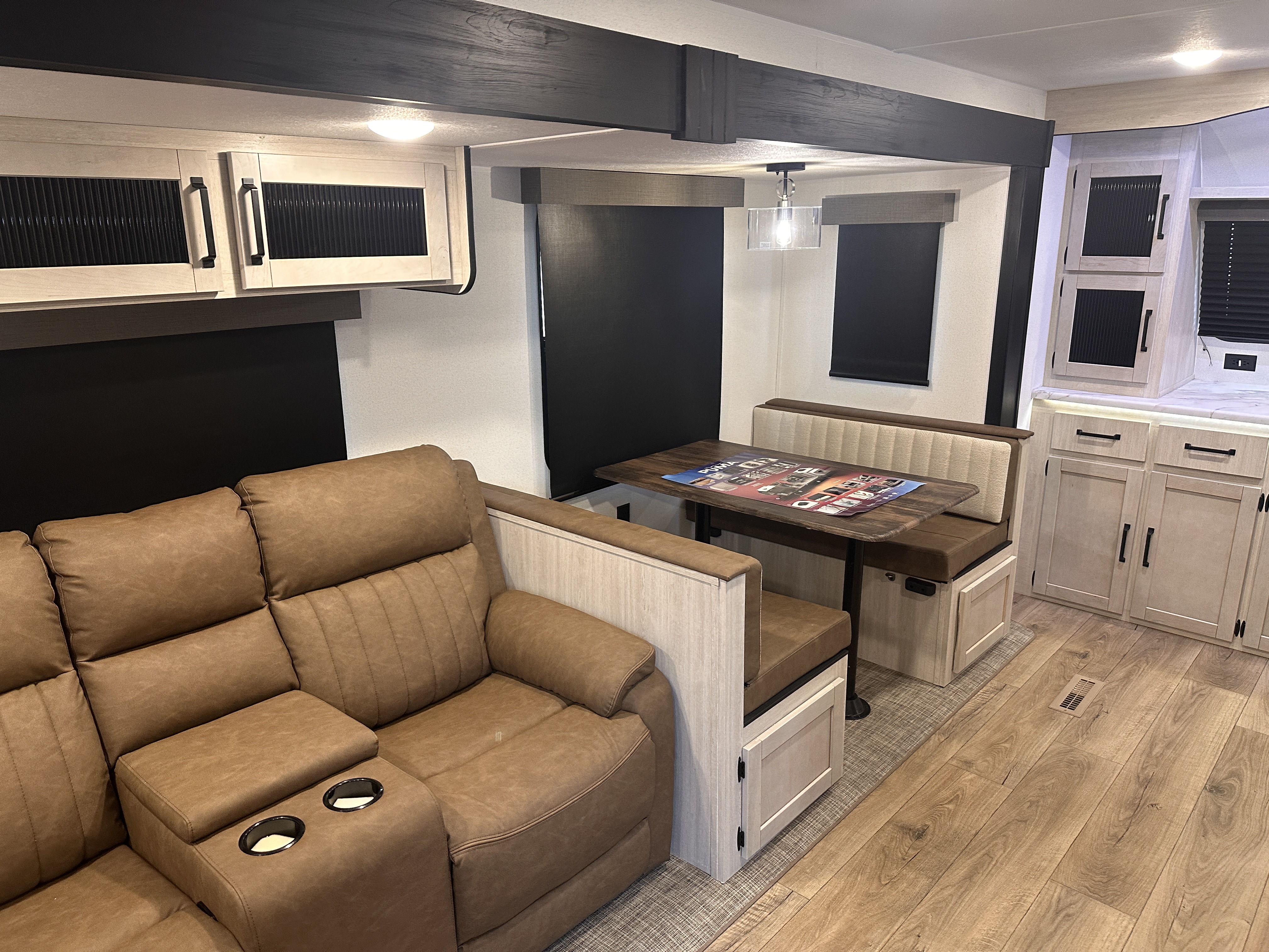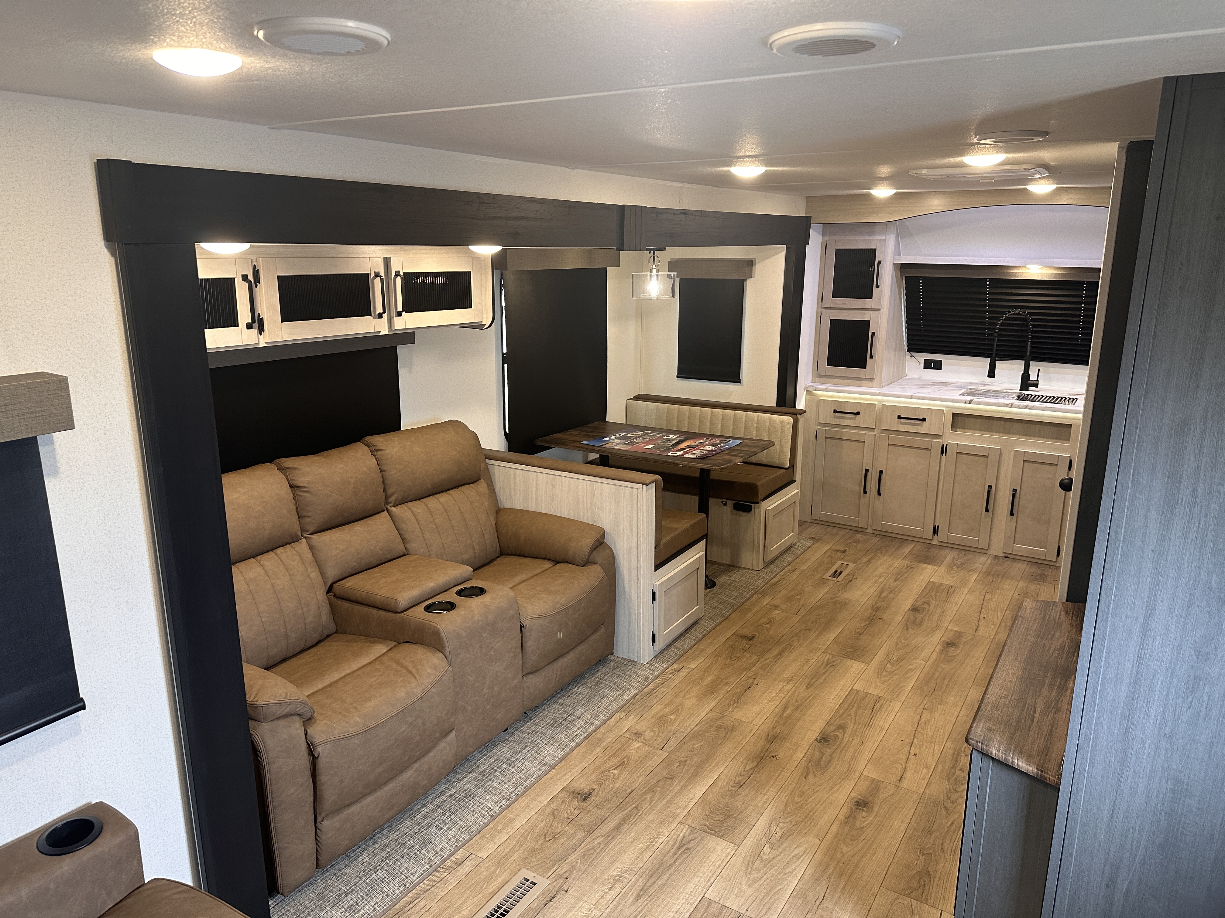#### Key Features & Highlights * Spacious **front kitchen layout** with expansive counter space * Residential-style appliances including large refrigerator and oven * Comfortable rear living area with theater seating and sofa * Private master bedroom with queen bed and ample storage * Large bathroom with walk-in shower and linen storage * Multiple slide-outs for maximum interior living space * Climate control for year-round comfort * Modern interior décor with durable, easy-to-clean materials